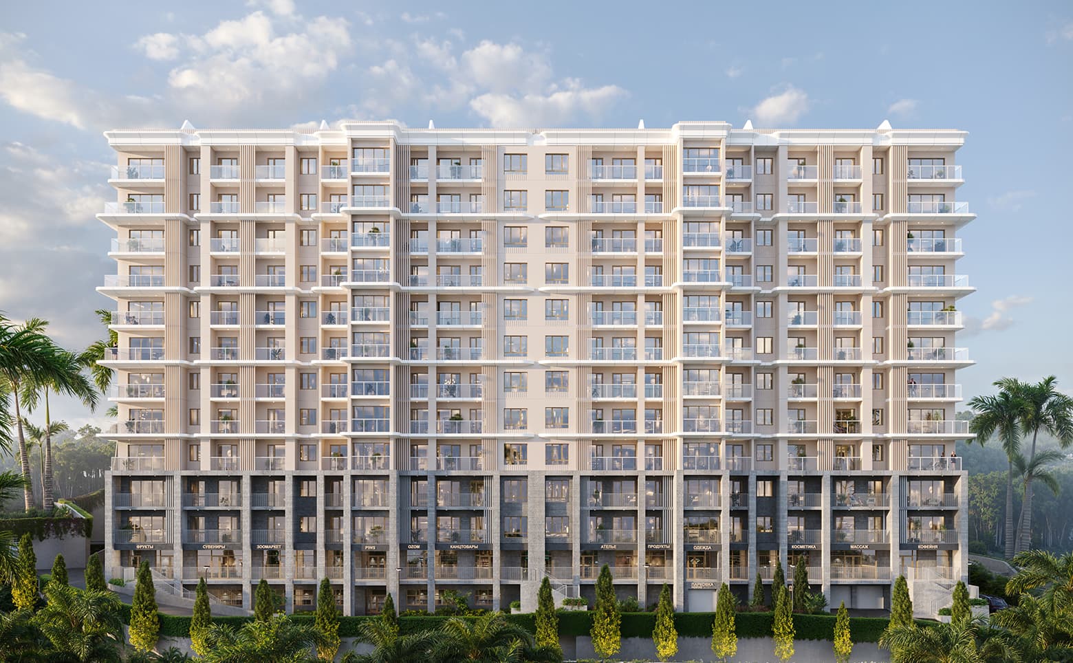 Жилой комплекс представляет собой архитектурно выверенный проект, который гармонично интегрирован в природный ландшафт. Здание переменной этажности до 9 уровней выполнено по монол…
