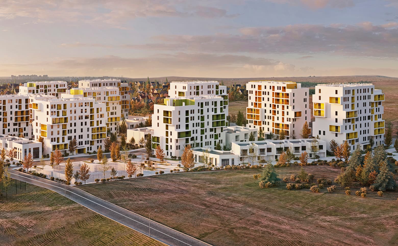 Апарт-комплекс комфорт-класса расположен на территории площадью 17 га. В первом этапе застройки представлено 3 корпуса переменной этажности от 5 до 9 этажей. Здания возведены по к…