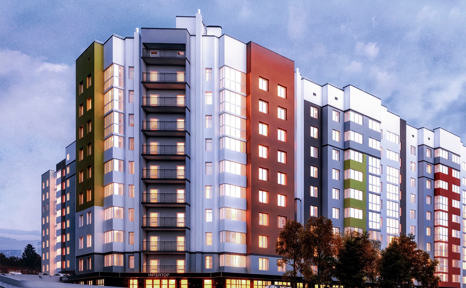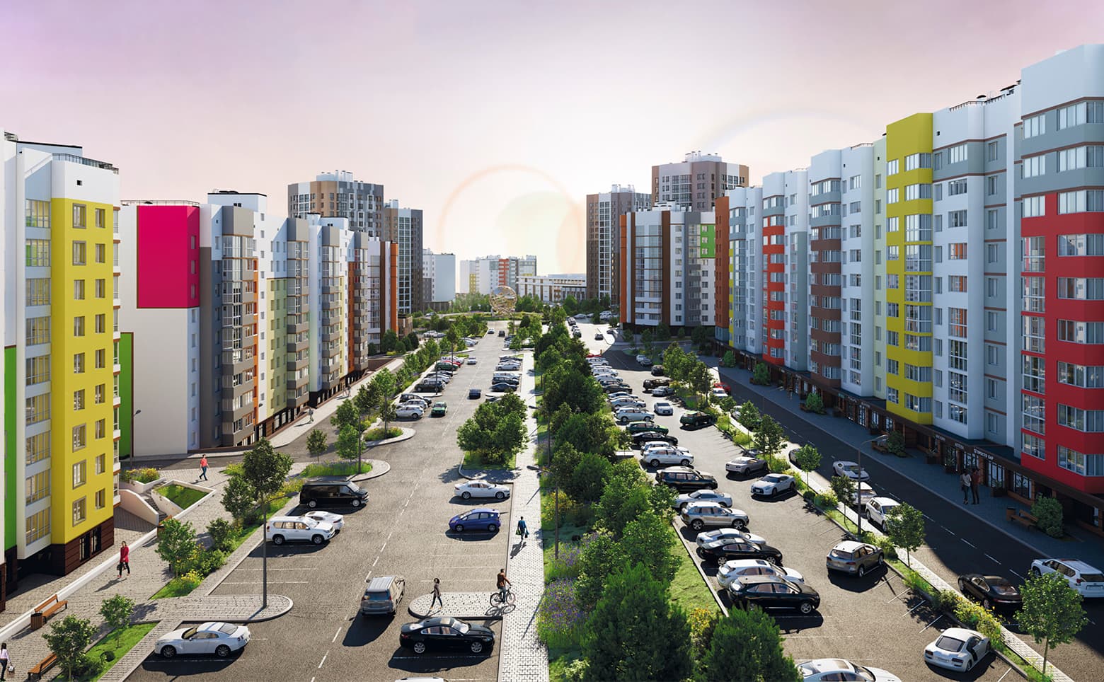 Жилой микрорайон состоит из более чем 80 домов, 46 из которых уже сданы в эксплуатацию. Застройка окружена зелеными массивами и отличается переменной этажностью до 16 этажей. Дома построены по монолитной технологии, фасады отделаны штукатуркой. В подъездах установлены пассажирские и грузовые лифты.