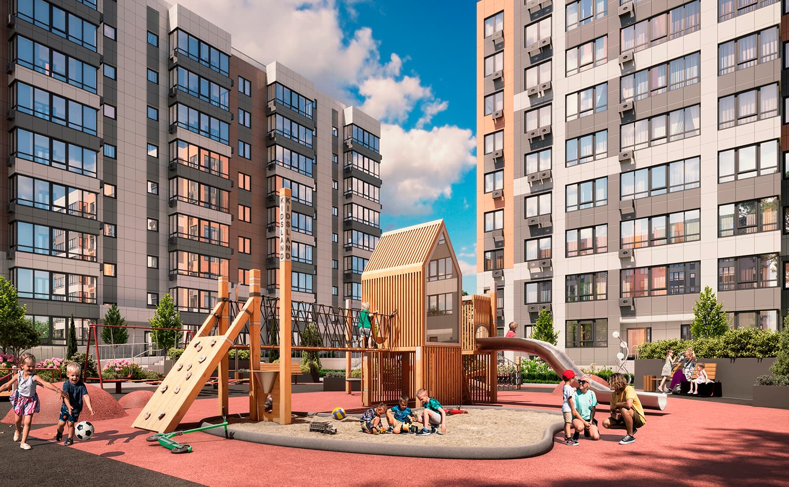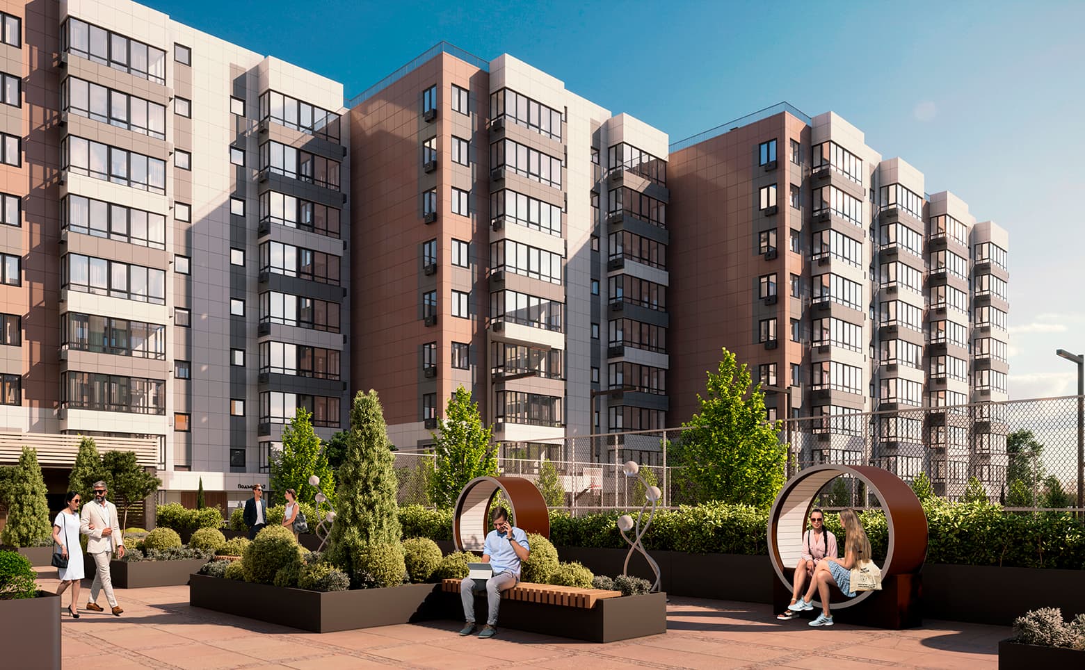 Семейный микрорайон представлен коллекцией монолитных домов высотой 8 этажей. Вентилируемые фасады облицованы керамогранитом, что повышает энергоэффективность зданий. Входные группы оформлены дизайнерскими интерьерами, в подъездах предусмотрена навигация. Для доступа в дом используется система смарт-карт или мобильное приложение. Установлены пассажирские и грузовые лифты. Объект оснащен собственной котельней.