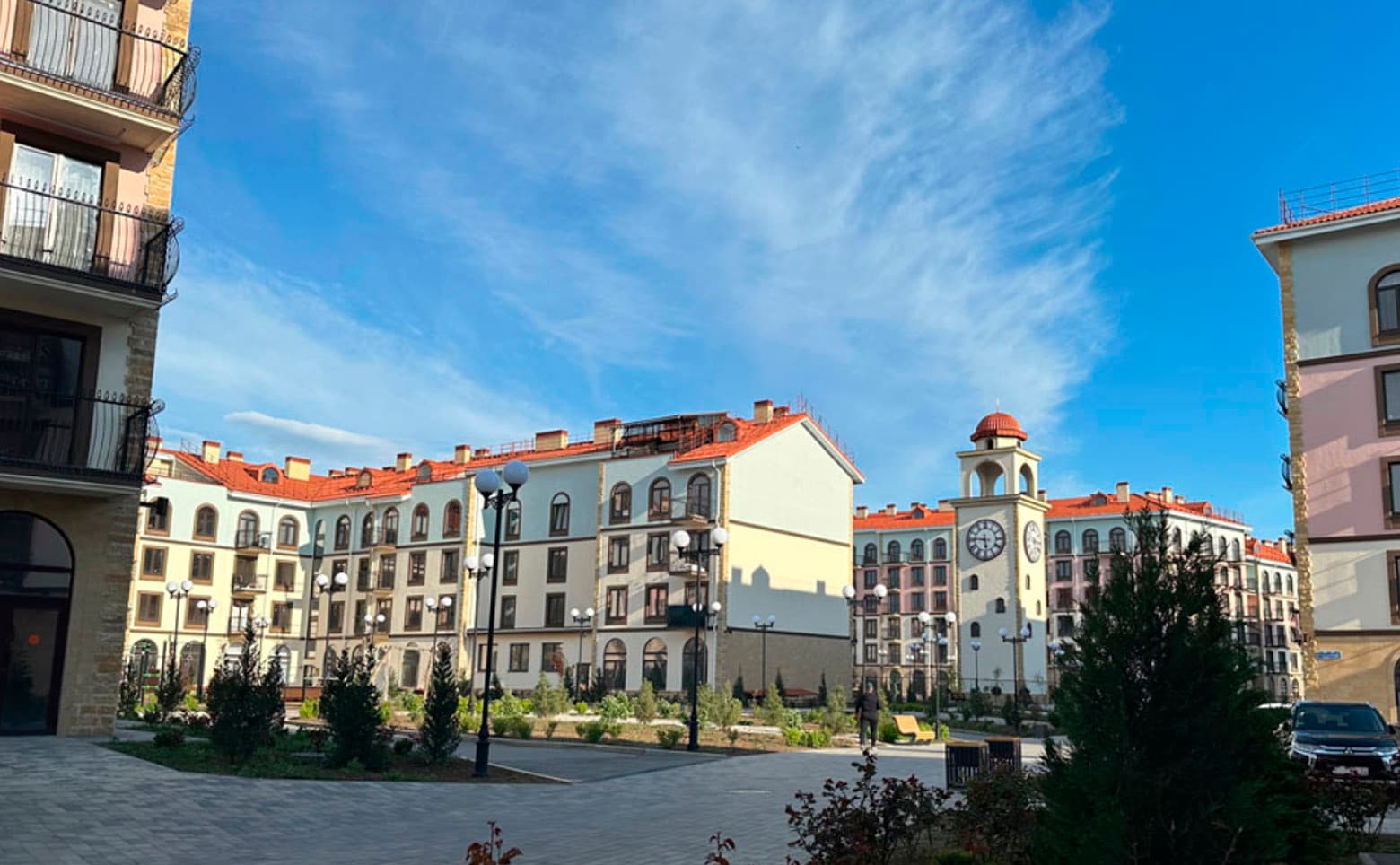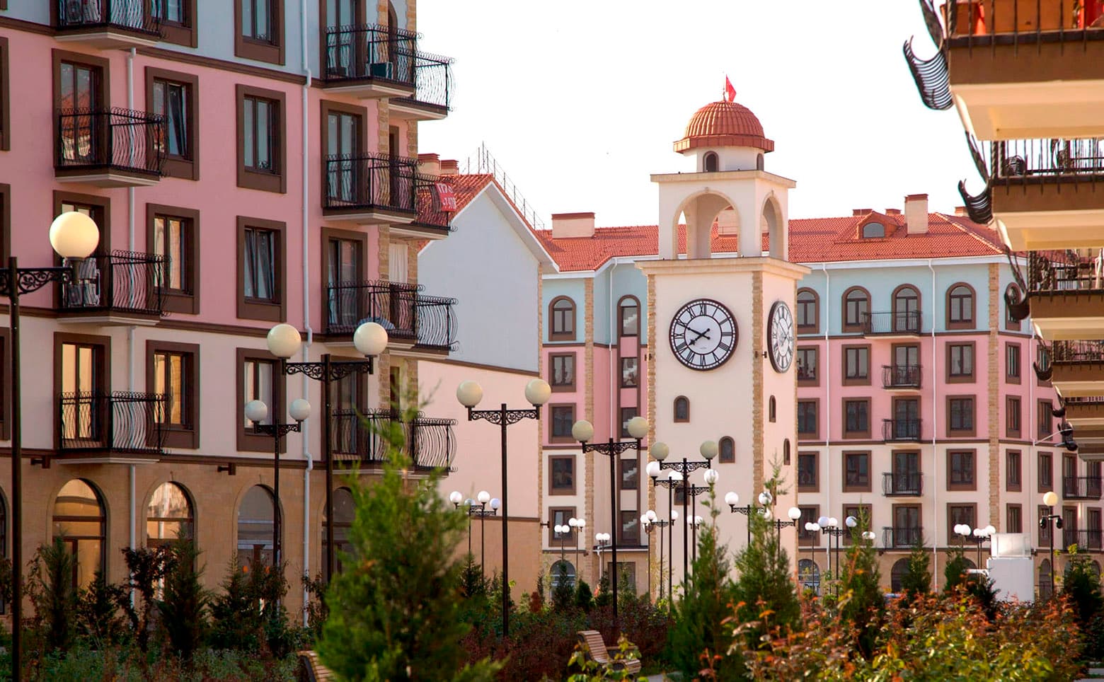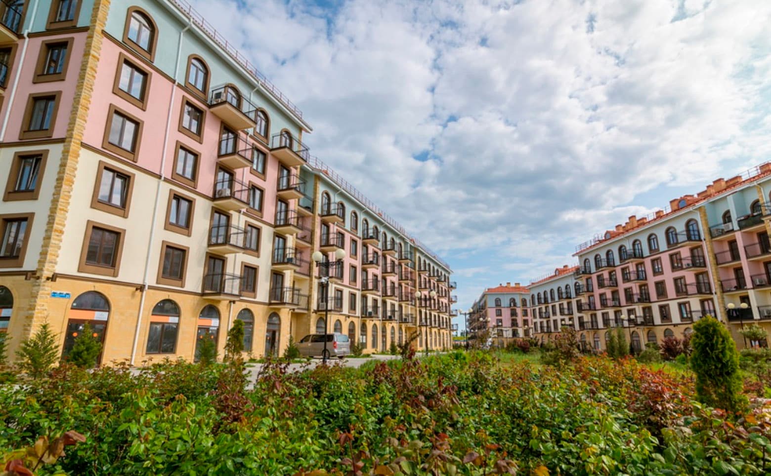 Комплекс апартаментов бизнес-класса представлен домами переменной этажности от 5 до 7 уровней. Архитектура выдержана в средиземноморском стиле с черепичными скатными крышами, козы…