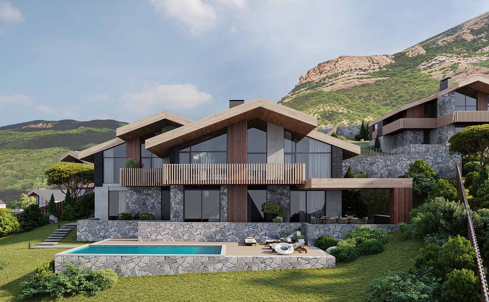 Клубный поселок премиум-класса расположен на территории площадью 10,2 га. В составе проекта предусмотрены участки от 5,5 до 11,41 сотки. Вид разрешенного использования земли — ИЖС с возможностью оформления постоянной регистрации. На участках возводятся дома в едином стиле шале. Здания выполнены по монолитной технологии с комбинированными фасадами из природных материалов.