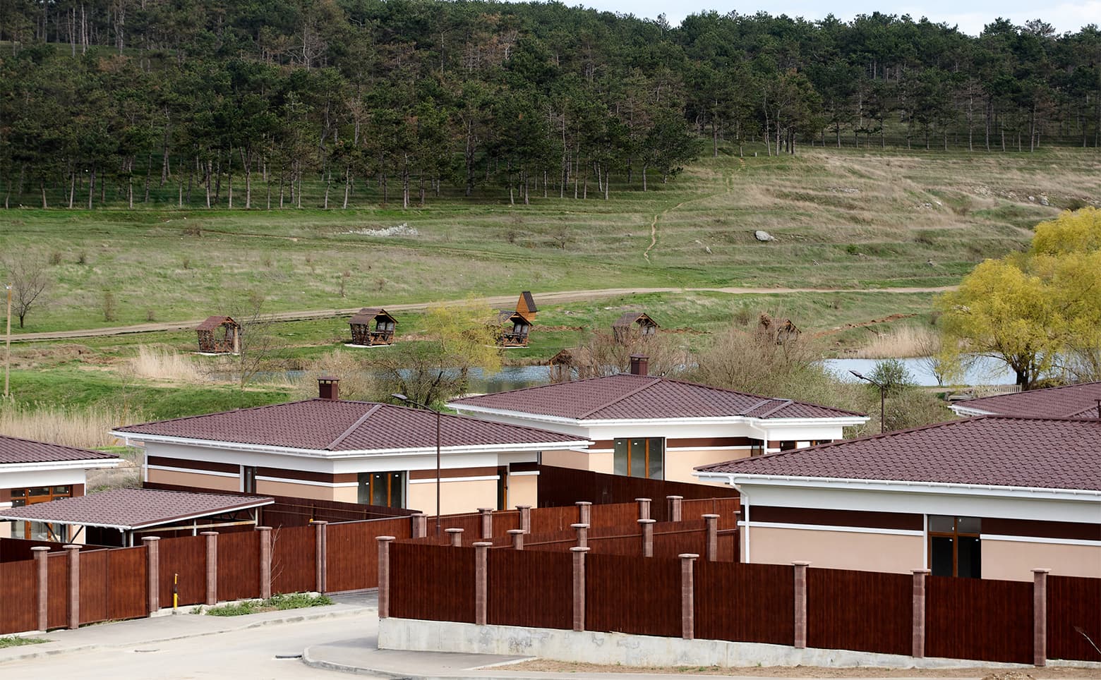В поселке представлены участки площадью по 6 соток с уже готовыми домами. Земли относятся к категории СНТ, предусмотрена возможность оформления постоянной регистрации. Дома построены по монолитной технологии, фасады выполнены с использованием комбинированных материалов.