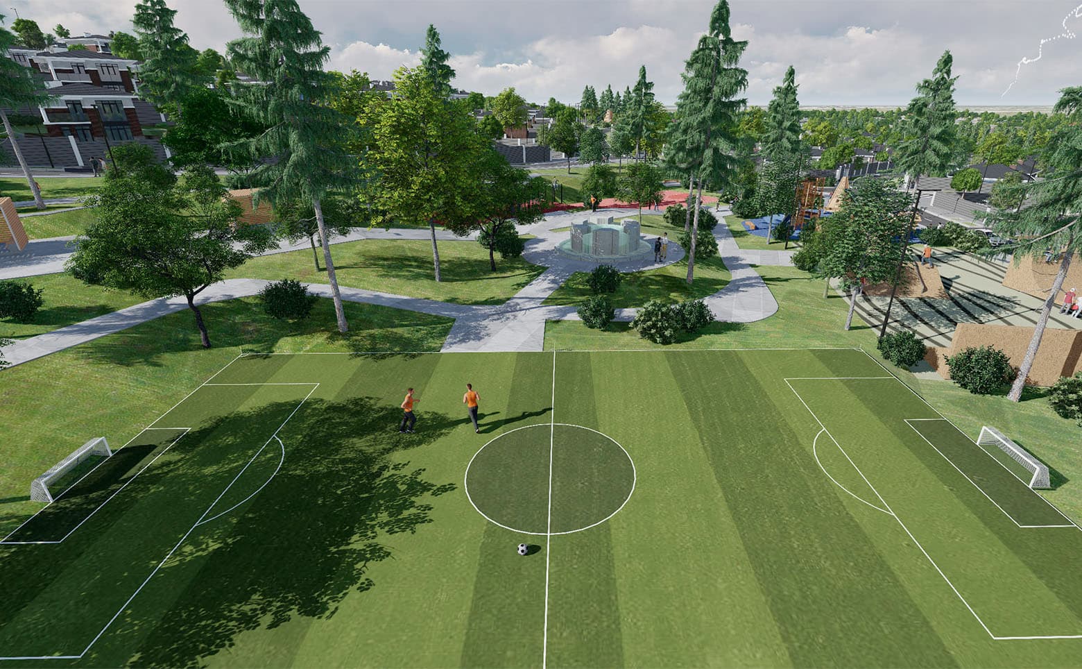 Коммуникации полностью центральные: водоснабжение, газопровод и канализация, электричество мощностью 15 кВт. Доступен оптоволоконный интернет. На территории предусмотрены стоянки для автомобилей, а также спортивные и рекреационные зоны: уличные тренажеры, футбольное и баскетбольное поля, детские площадки и скейт-парк.