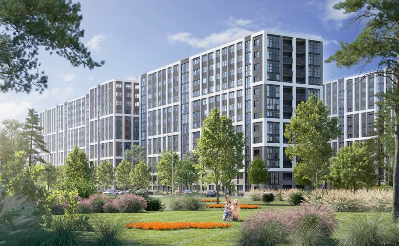 Апарт-комплекс комфорт-класса расположен на территории площадью 17 га. В первом этапе застройки представлено 3 корпуса переменной этажности от 5 до 9 этажей. Здания возведены по к…