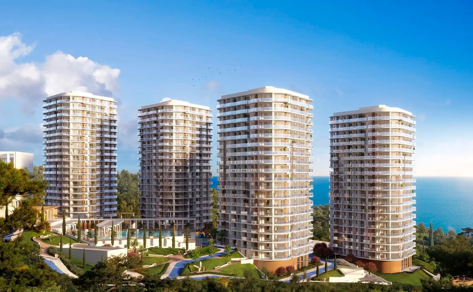 В комплексе предлагаются студии и апартаменты с 1–4 комнатами, в том числе европланировки. Высота потолков варьируется от 2,85 до 3,1 метра. Одним из главных преимуществ являются панорамные окна и большие открытые террасы с видом на море, горы и город. Жилье идет в подчистовой отделке: выполнены цементная стяжка пола, выравнивание и оштукатуривание стен. По желанию можно дозаказать готовую отделку от застройщика по типовому или индивидуальному проекту.