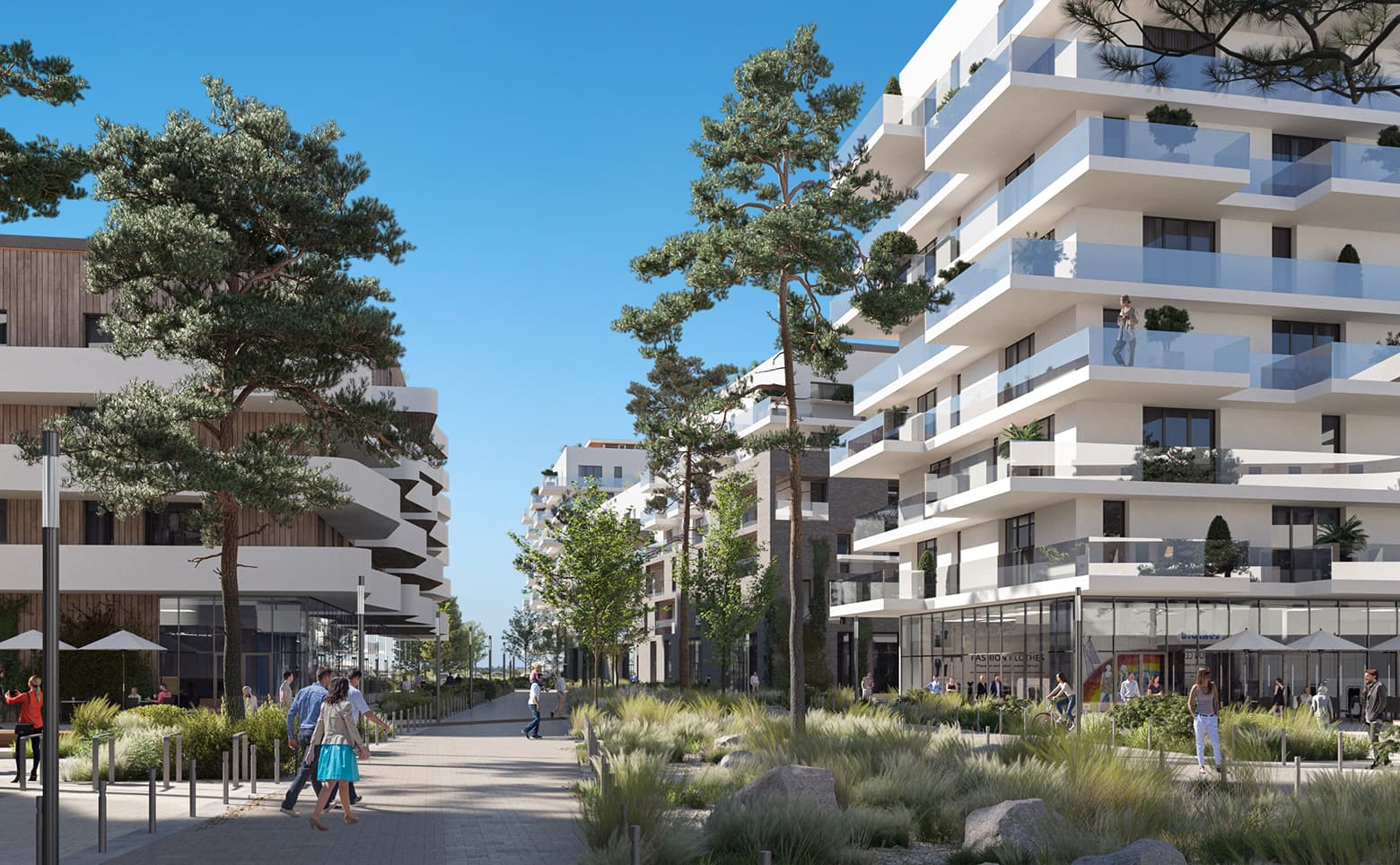В комплексе предлагаются студии и апартаменты с 1–4 комнатами площадью от 27,6 до 206,6 кв. м. Помещения отличаются высокими потолками — от 3 до 3,8 м, и панорамным остеклением, благодаря которому квартиры наполнены светом. Из ряда апартаментов открываются виды на Черное море. Все объекты передаются без отделки, в черновом варианте — с возведенными стенами, что позволяет выполнить интерьер по индивидуальному проекту.