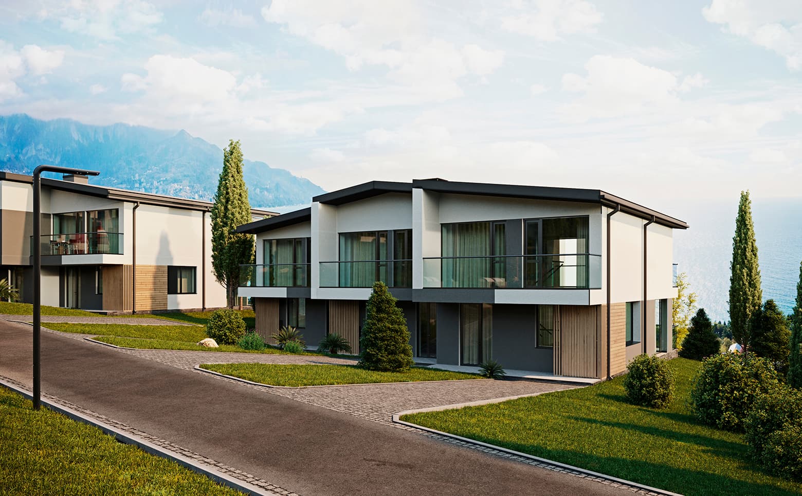 Курортный клуб представляет собой камерный комплекс из 14 таунхаусов высотой от 2 до 3 этажей в заповедной зоне. Архитектура выдержана в лаконичном стиле: здания возведены по монолитной технологии, фасады — вентилируемые, облицованы панелями. Малоэтажная застройка органично вписывается в окружающий ландшафт, что создает ощущение уединенности и близости к природе.