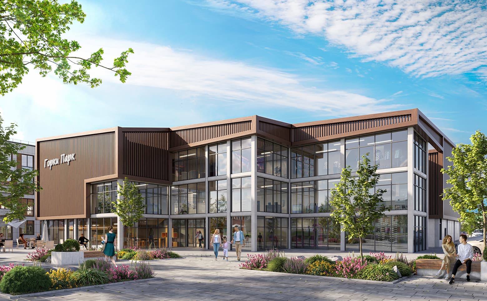 На территории комплекса выполнено ландшафтное озеленение с системой автополива, обустроена центральная площадь с сухим фонтаном, аллея-парк, детские и спортивные площадки, общественный плей-хаб и зоны отдыха. Для владельцев авто организован отдельный многоуровневый паркинг со станциями для зарядки электромобилей и мотоциклов. В каждом подъезде размещены колясочные и велосипедные, на подземном уровне — келлеры для хранения. Нижние этажи отведены под коммерческую инфраструктуру.