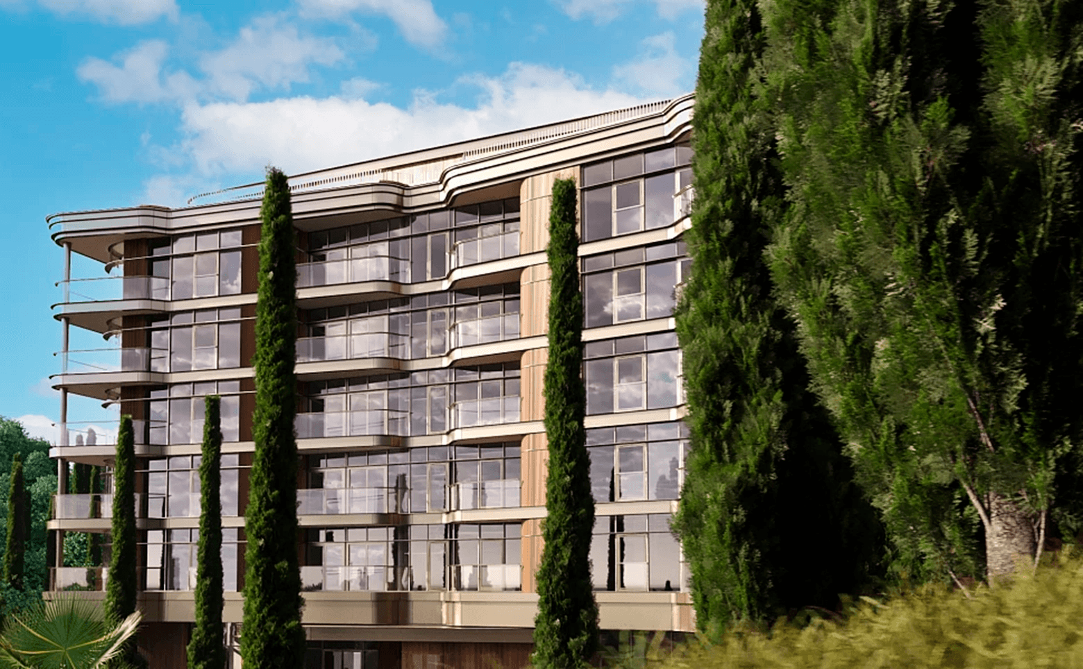 Апарт-отель подставляет собой 15-этажный корпус, возведенный по монолитной технологии. Архитектура выполнена в современном курортном стиле с панорамным остеклением, фасады облицов…