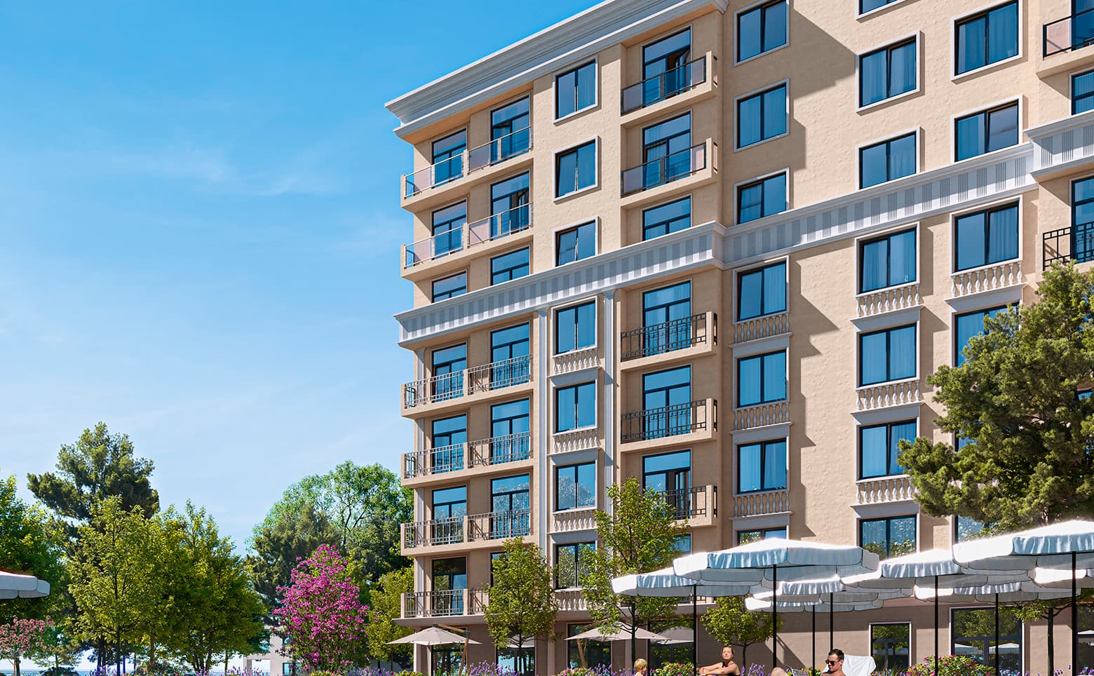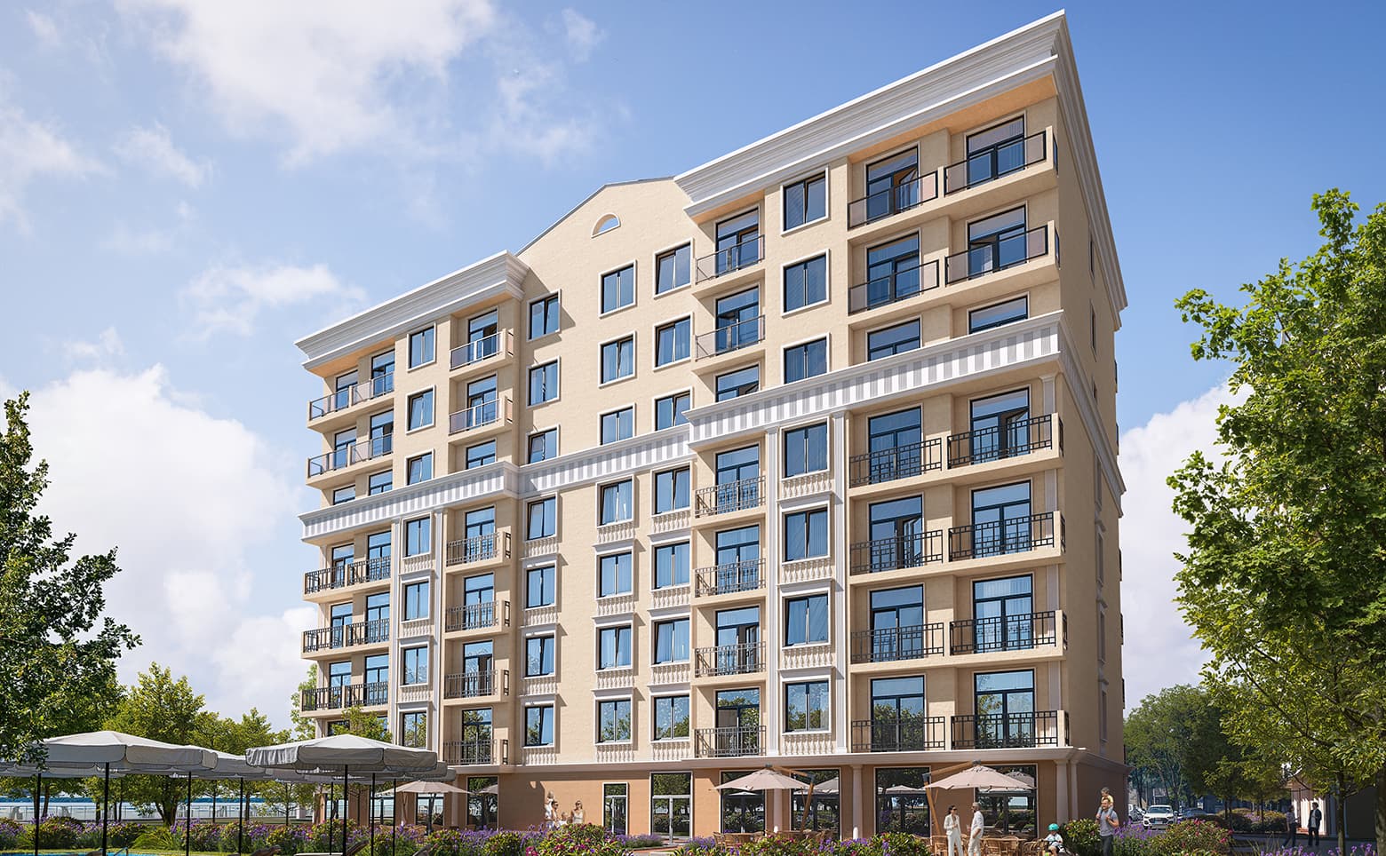Комплекс апартаментов бизнес-класса представлен домами переменной этажности от 5 до 7 уровней. Архитектура выдержана в средиземноморском стиле с черепичными скатными крышами, козы…
