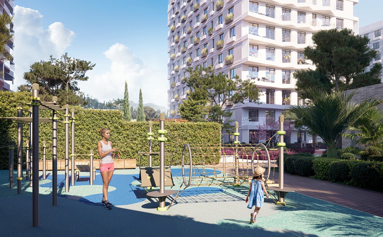 В проекте предлагается более 160 вариантов планировок — от студий до форматов 5-евро. Доступны опции с мастер-спальнями, гардеробными, видовыми балконами и открытыми террасами. Квартиры оборудованы панорамными окнами, из которых открываются виды на море или горы. На выбор представлены варианты с черновой, предчистовой и чистовой отделкой, выполненной с использованием экологичных материалов. Можно выбрать типовой дизайн или заказать индивидуальное проектирование интерьера.