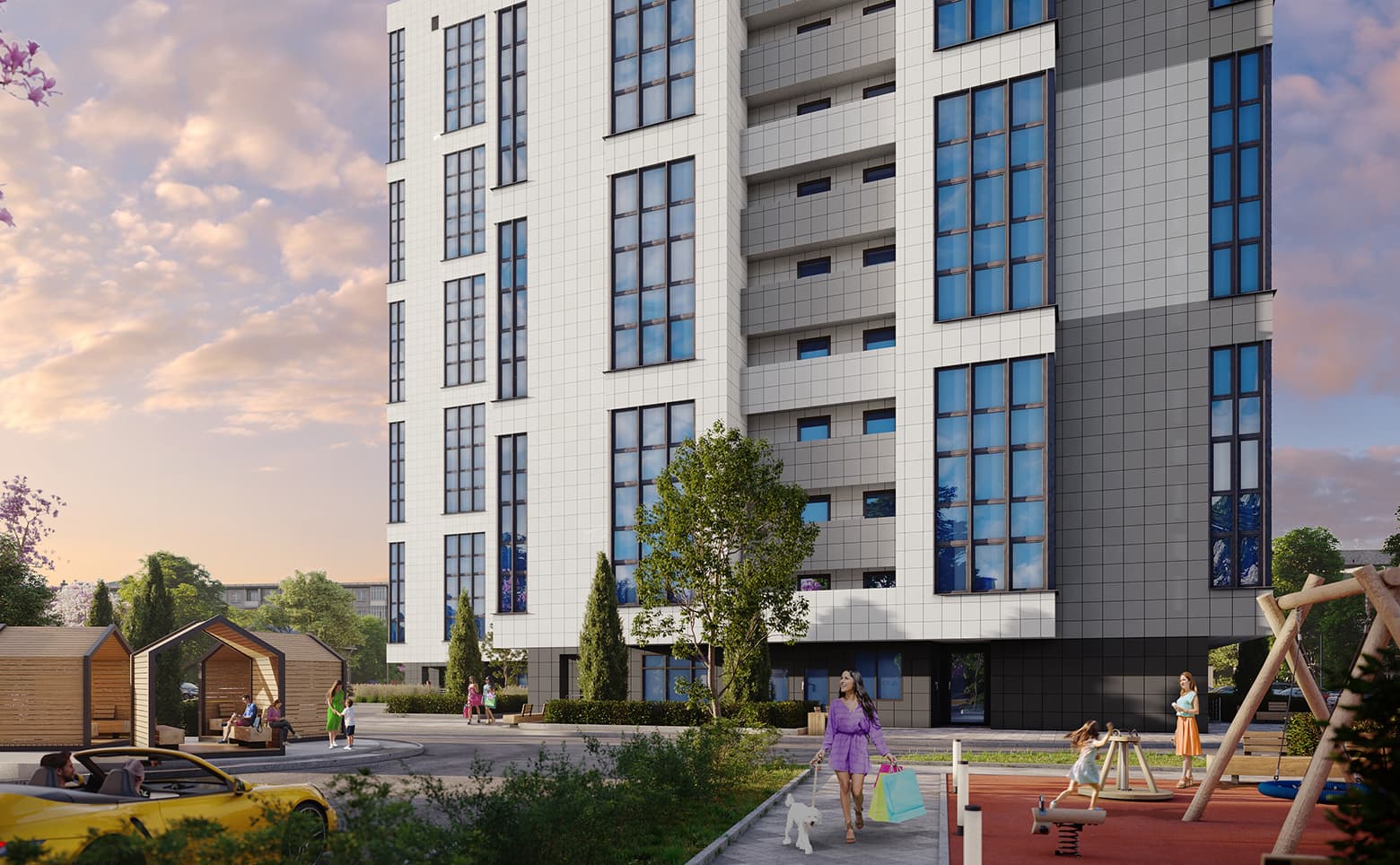 В проекте предлагаются студии и квартиры с 1–3 комнатами площадью от 34 до 102 кв. м. В помещениях установлены увеличенные окна, а высота потолков составляет 2,72 м. Жилье идет в подчистовой отделке: выполнена цементно-песчаная стяжка пола, стены выровнены штукатуркой, вмонтированы системы отопления и учета ресурсов.