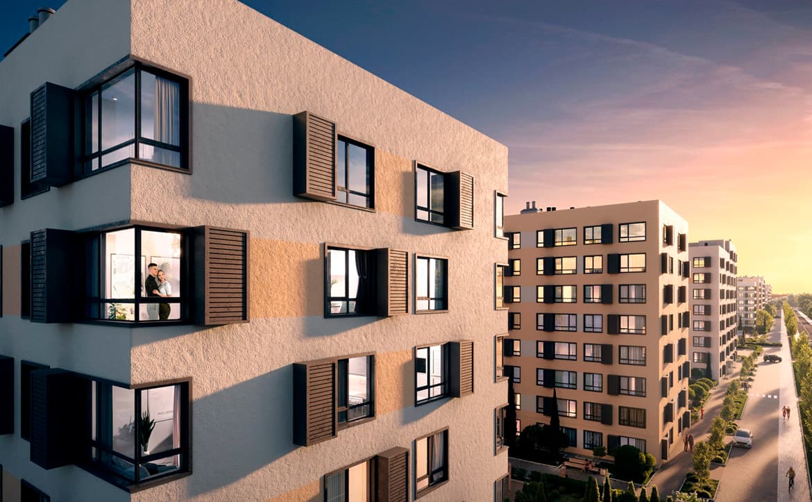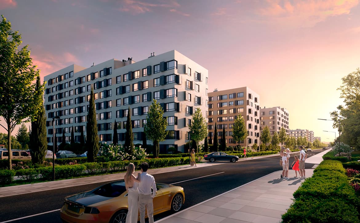Комплекс апартаментов бизнес-класса представлен домами переменной этажности от 5 до 7 уровней. Архитектура выдержана в средиземноморском стиле с черепичными скатными крышами, козы…