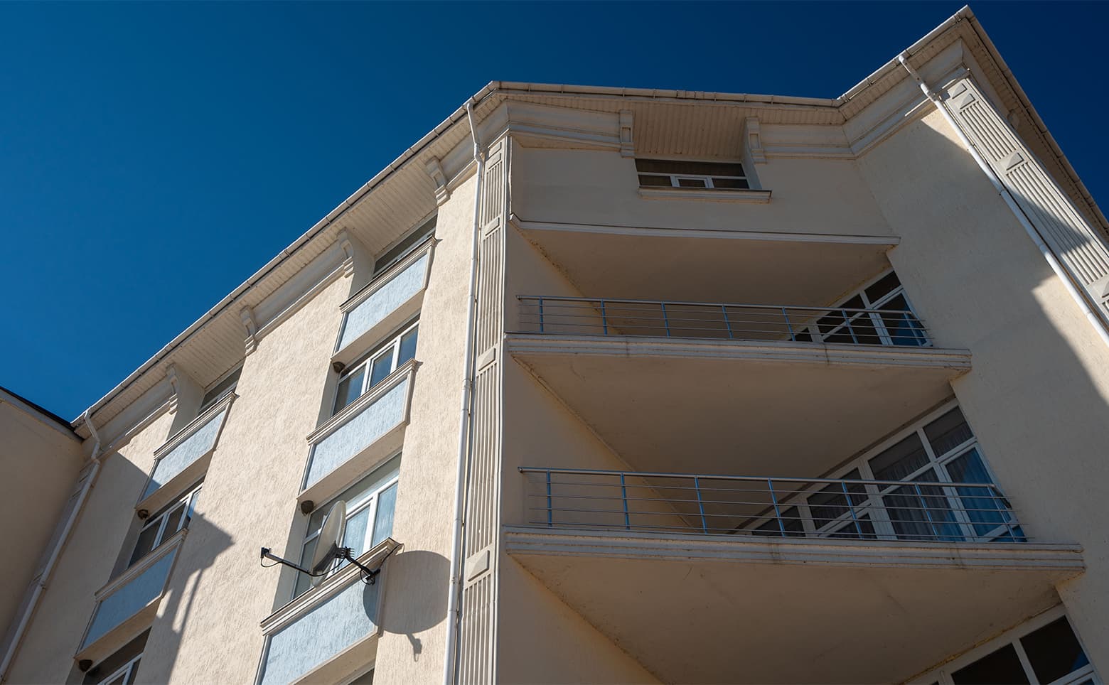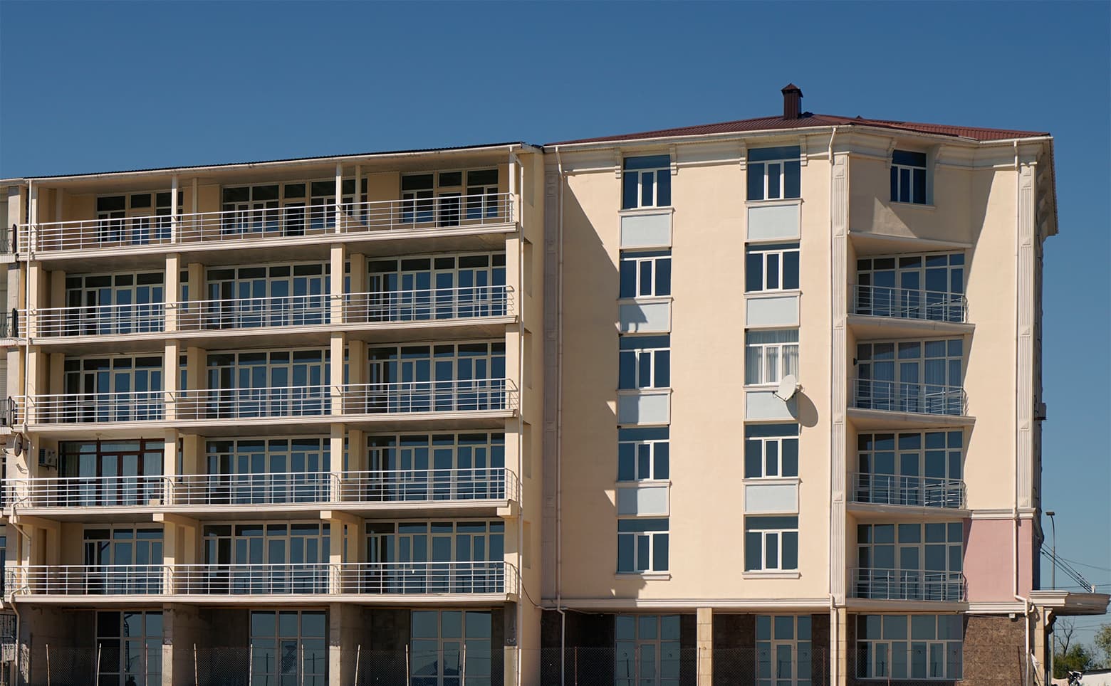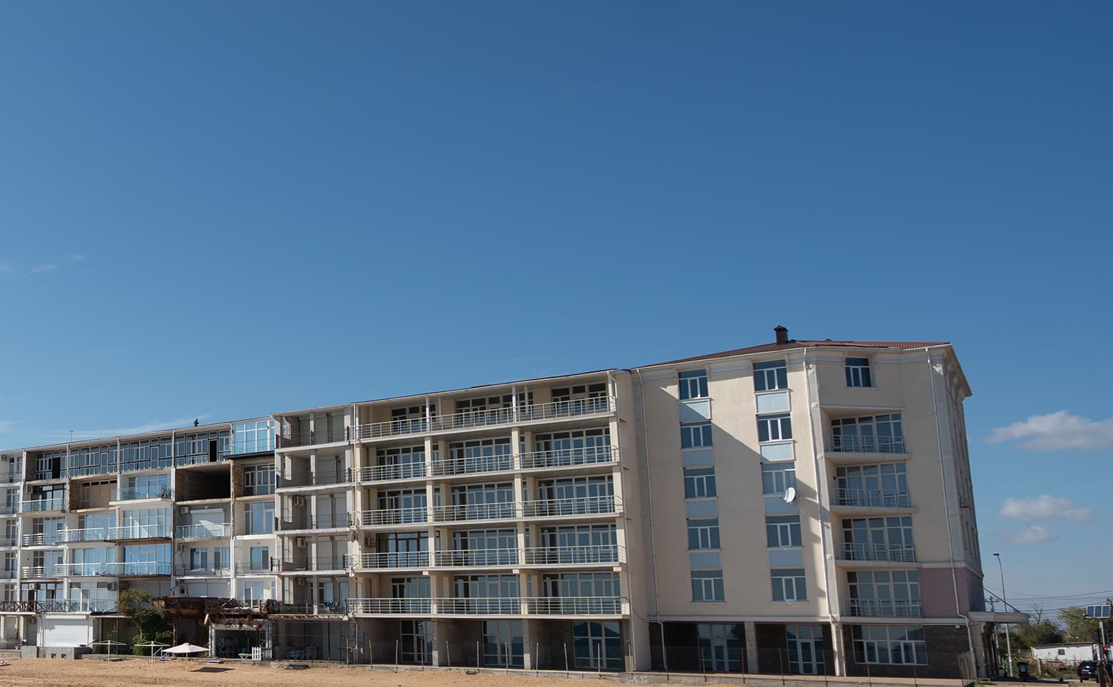 Комплекс апартаментов комфорт-класса представлен 6-этажным зданием, построенным по монолитной технологии с оштукатуренными фасадами.